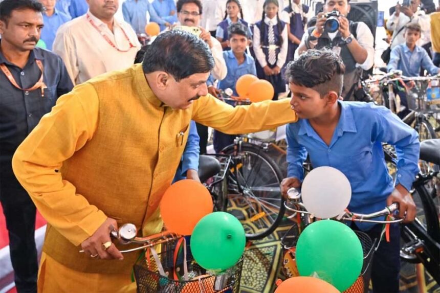 स्कूल शिक्षा विभाग इस वर्ष नि:शुल्क साइकिल प्रदाय योजना में 4 लाख 30 हजार बच्चों को नि:शुल्क साइकिल का वितरण करेगा। साइकिल वितरण की शुरूआत मुख्यमंत्री डॉ. मोहन यादव ने गुरू पूर्णिमा महोत्सव में भोपाल के शासकीय कमला नेहरू सांदीपनि विद्यालय के सर्व सुविधा युक्त भवन के लोकार्पण समारोह से की है। मुख्यमंत्री डॉ. यादव ने 50 बच्चों को नि:शुल्क साइकिलें वितरित की। प्रदेश में अब तक एक लाख से अधिक बच्चों को उनकी पात्रतानुसार नि:शुल्क साइकिल का वितरण किया जा चुका है।