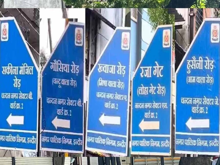 इंदौर के एक मुस्लिमबहुल इलाके की सड़कों के नामों को लेकर विवाद के बाद बृहस्पतिवार को नगर निगम ने विवादित साइनबोर्ड हटा दिए और स्थानीय प्रशासन ने कहा कि वह इन मार्गों के कथित तौर पर अवैध नामकरण के कारण क्षेत्रीय पार्षद के खिलाफ कानूनी कार्रवाई करेगा. सत्तारूढ़ भारतीय जनता पार्टी (भाजपा) के पूर्व विधायक आकाश विजयवर्गीय ने नगर निगम आयुक्त शिवम वर्मा को पत्र लिखकर आरोप लगाया कि चंदन नगर की कुछ सड़कों का नया नामकरण ‘धर्म विशेष' के नामों के आधार पर कर दिया गया है और शहरी निकाय के कर्मचारियों ने सड़कों पर ‘परिवर्तित नामों' के साइनबोर्ड भी लगा दिए हैं.
