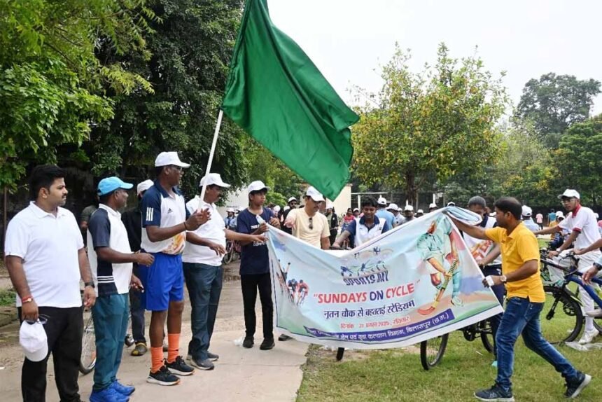 राष्ट्रीय खेल दिवस के तहत आज बिलासपुर में स्कूली छात्र-छात्राओं और 300 से अधिक खिलाड़ियों ने साइकल रैली निकाली। भारत सरकार के फिट इंडिया कार्यक्रम "सन्डेस ऑन सायकल" (Sundays on Cycle) के तहत पीएमश्री स्वामी आत्मांनद विद्यालय नूतन चौक सरकंडा से स्वर्गीय बी.आर. यादव राज्य खेल प्रशिक्षण केन्द्र बहतराई तक यह रैली निकाली गई। पूर्व ओलम्पियन एवं हॉकी के हेड कोच श्री अजीत इमानुएल लकड़ा और अंतरराष्ट्रीय कबड्डी खिलाडी संजू देवी ने हरी झंडी दिखाकर रैली को रवाना किया।