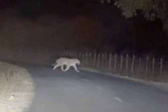 अमरकंटक में सड़क पर दिखा बाघ, गुजरते शिक्षक ने मोबाइल में कैद किया रोमांचक नज़ारा