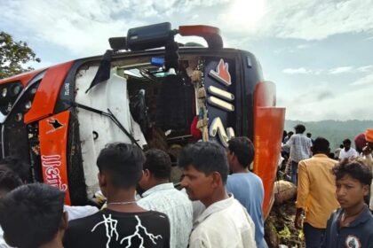बड़वानी में नर्मदा परिक्रमा बस पलटी, 30 से ज्यादा घायल; 1 श्रद्धालु की मौत