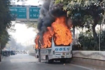 इंदौर में वाहन टकराने के बाद शुक्ला ब्रदर्स की बस में आग, यात्री सुरक्षित, फायर ब्रिगेड ने पाया काबू