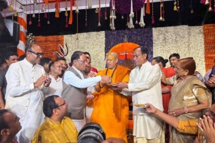 मुख्यमंत्री विष्णुदेव साय ने महामंडलेश्वर स्वामी कैलाशानंद गिरी से लिया आशीर्वाद, आध्यात्मिक विषयों पर संवाद