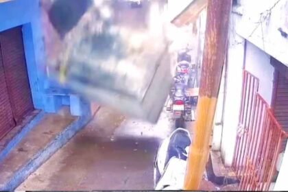 शाजापुर में होटल का शौचालय गिरा, नीचे खड़ी स्कूटी चकनाचूर